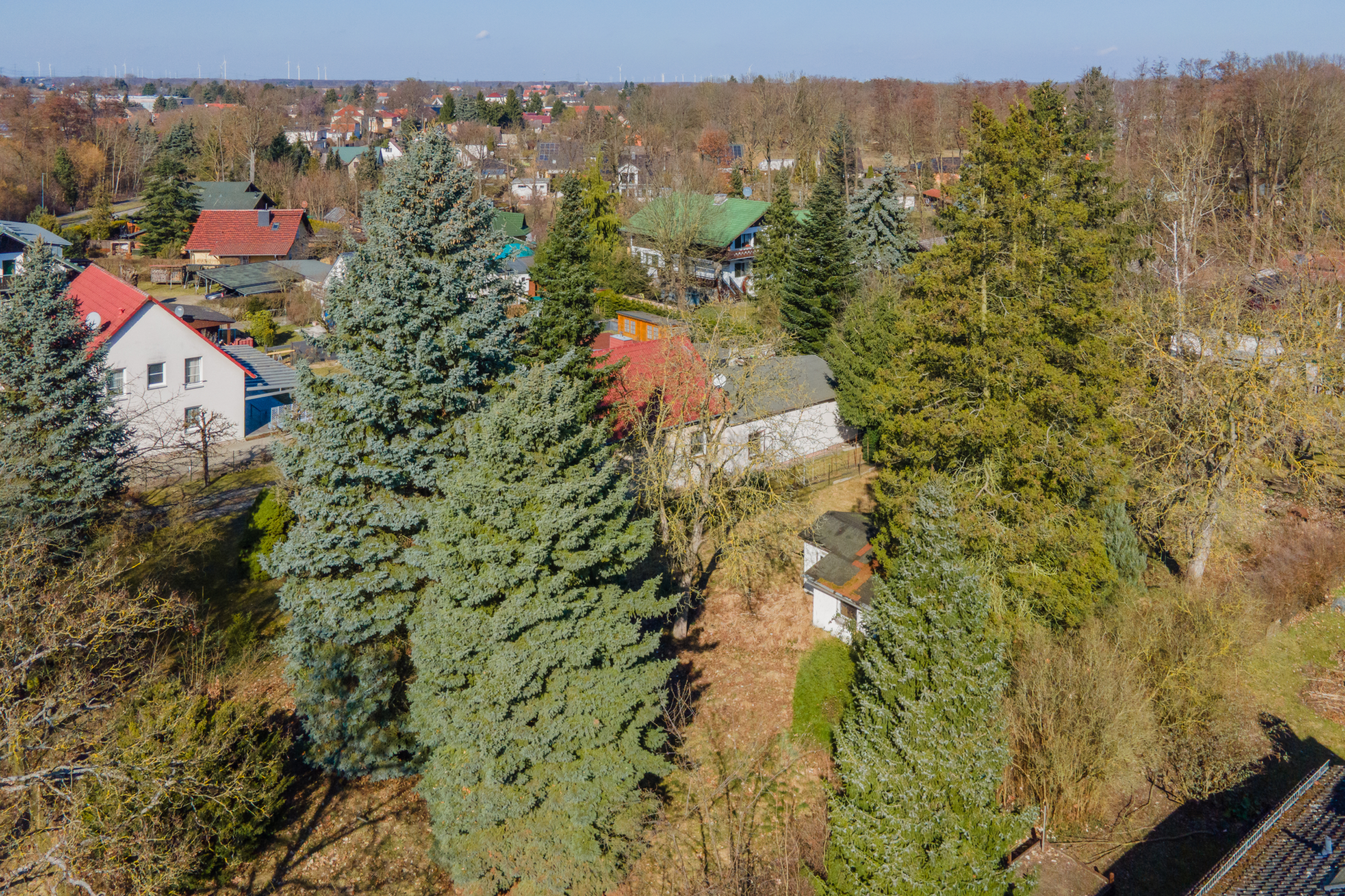 Damit bieten die Grundstücke ideale Voraussetzungen für ein geräumiges Einfamilienhaus, eine großzügige Stadtvilla oder einen kleinen Bungalow. Das Fällen der Bäume, der Abriss der kleinen Lauben, das Beräumen des Areals und die Kosten der Teilungsvermessung tragen der oder die Käufer.