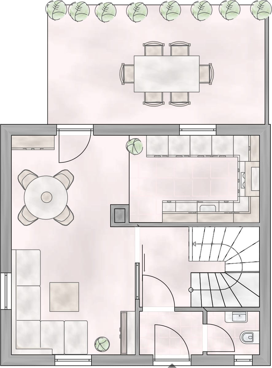 Auf rund 105,00 m² Wohnfläche zzgl. Keller beherbergt diese sympathische Doppelhaushälfte vier Zimmer, ein Bad, ein Gäste-WC, eine offene Küche und einen Balkon. Im Erdgeschoss erwartet Sie der Wohnbereich mit offener Wohnküche und einem Tageslicht-Gäste-WC direkt neben dem Eingang. Zwei Zimmer (beide mit Südbalkon) und eine Nische mit Stauraum bilden derzeit das Obergeschoss. Einer der Räume könnte geteilt werden, um Platz für weiteres Schlafzimmer auf der Etage zu schaffen. Eine Nische im Flur könnte zu einem Duschbad oder WC umgestaltet werden.