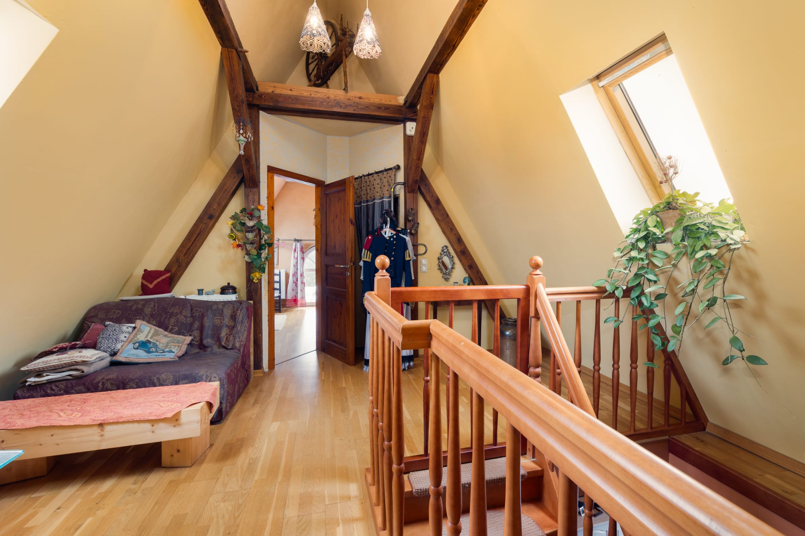 Das Haus ist genau die richtige Wahl für Menschen, die nach einem liebevoll gestalteten und rustikalen Zuhause mit viel Herz, Wärme und genau dem richtigen Quäntchen Altbau-Charme im Bauernhof-Stil suchen. Zahlreiche verspielte Massivholz-Elemente, ein Kamin, ein zusätzlicher Kamin-Ofen, wundervolle Kassetten-Türen mit stilvollen Zargen, teils hohe Decken und freigelegte Balken sowie die mit Lehmputz gespachtelten Wände lassen das Herz eines jeden höher schlagen, der von einem geruhsamen Leben auf dem Land träumt. Hier verspricht jede Ecke des Hauses solide Handwerksarbeit.