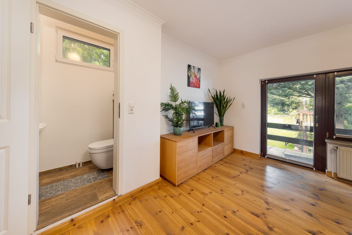 Auch die Einliegerwohnung mit zwei Zimmern, WC und Balkon kann nach Ihrem Bedarf genutzt werden. Möchten Sie sich ein Büro einrichten oder soll Ihr Kind die Möglichkeit erhalten, erste Erfahrungen mit einer eigenen Wohnung zu sammeln? Die Wohnung bietet eine Vielzahl an Möglichkeiten.