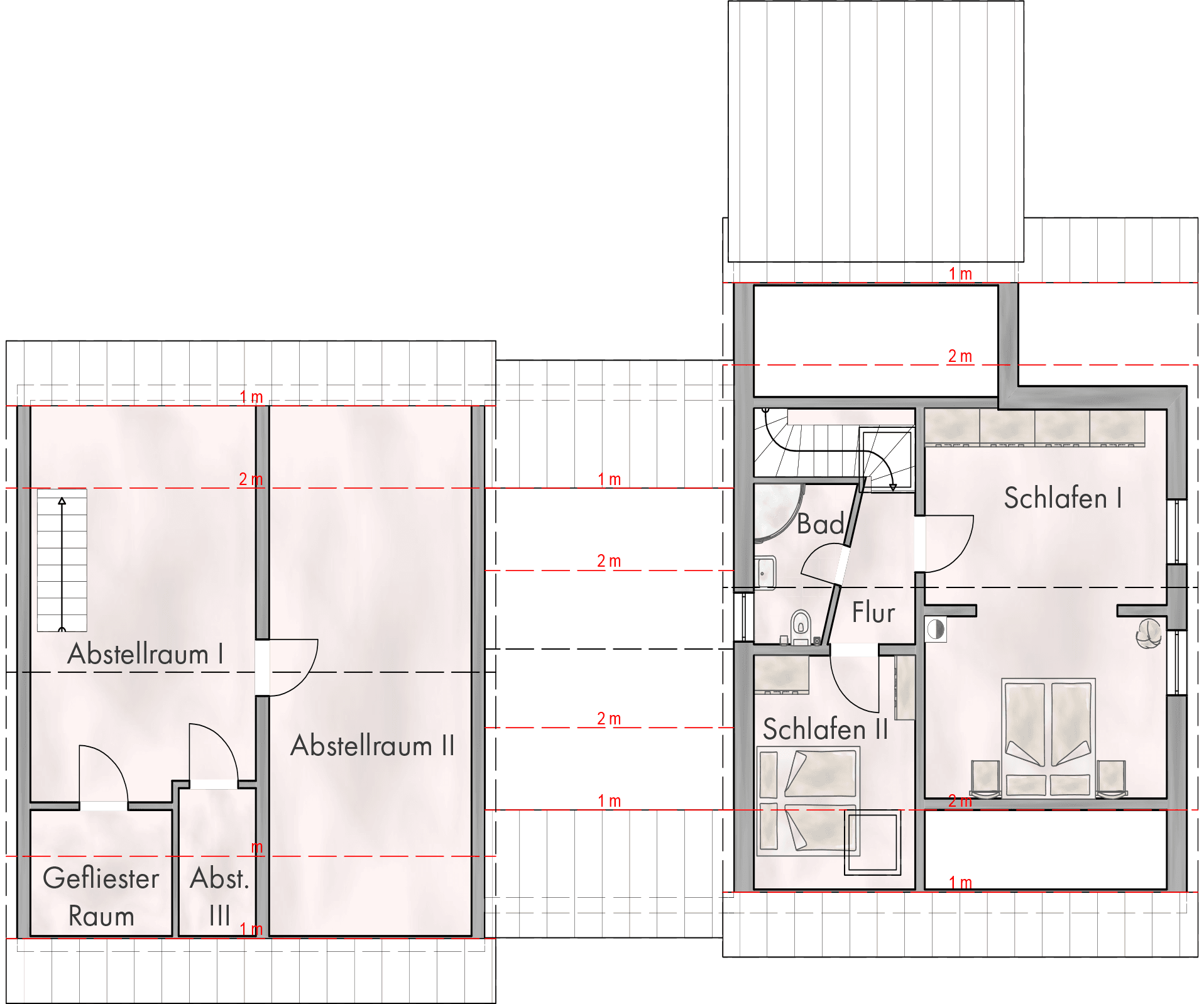 • Verschiedene Wandfarben in den Schlafzimmern im OG