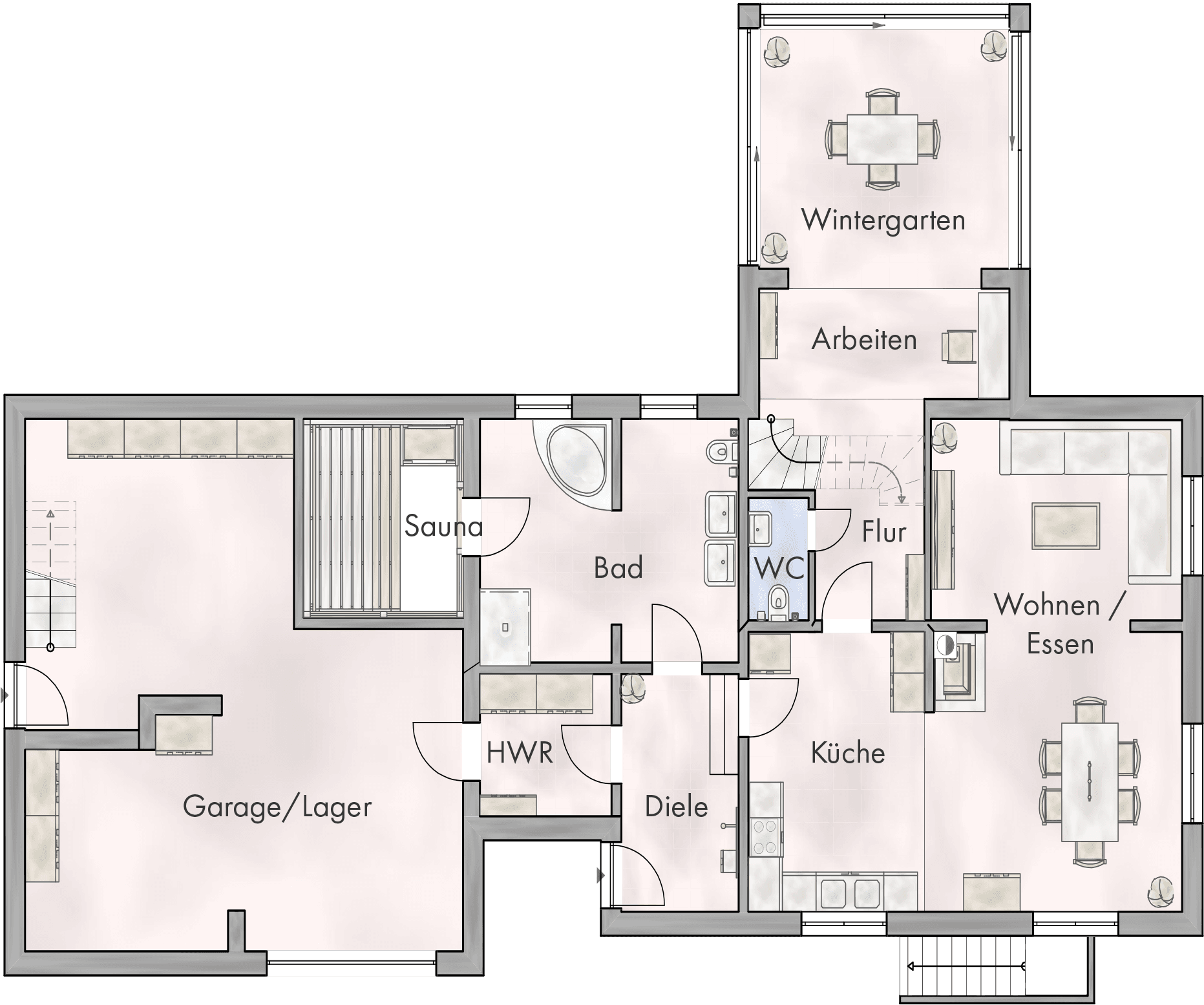 • Waschmaschinenanschluss im Hauswirtschaftsraum