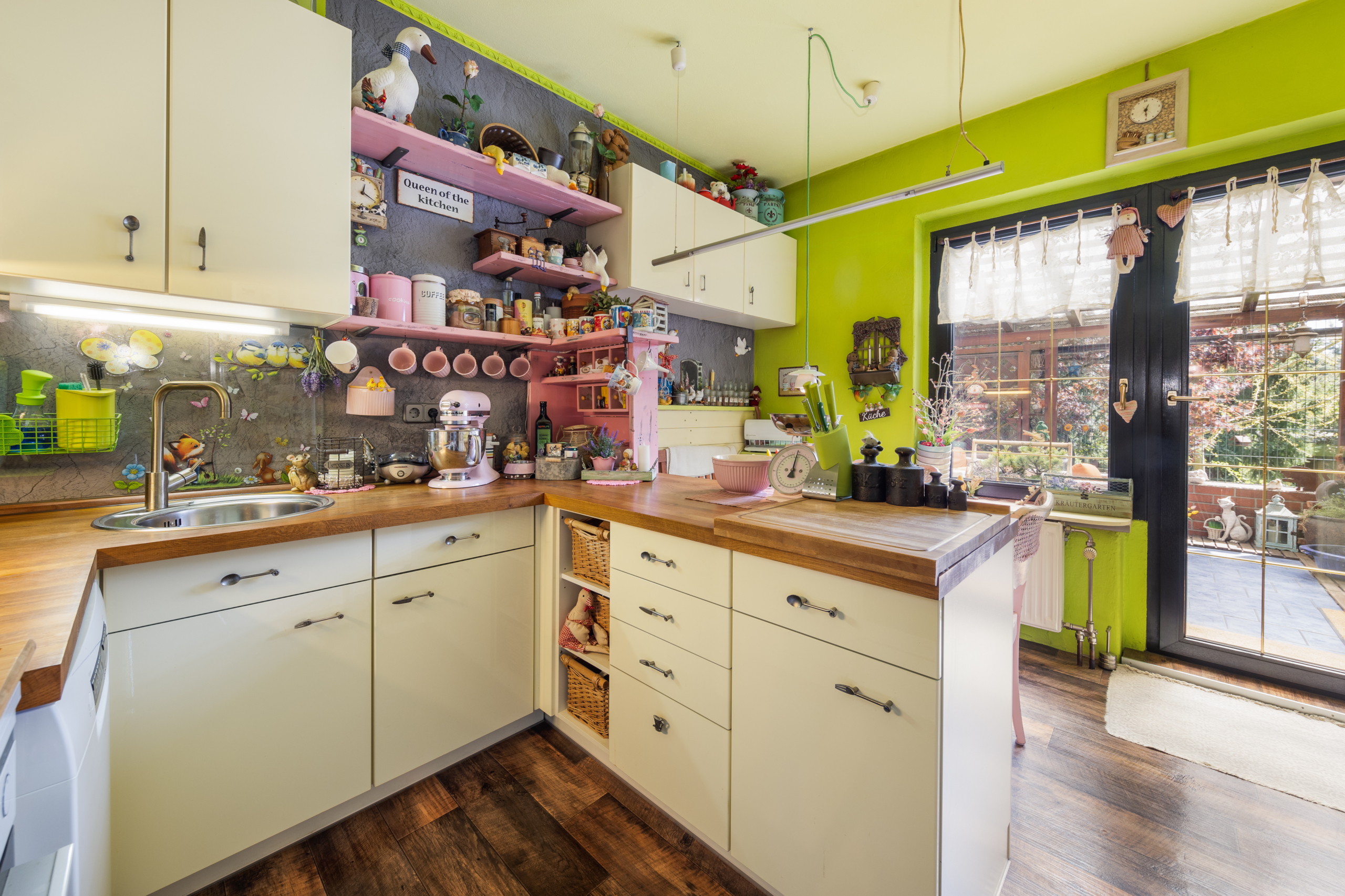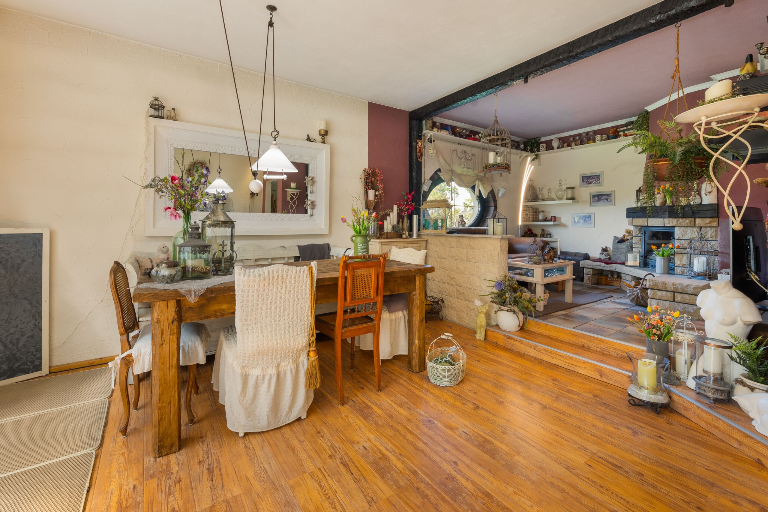In jedem Raum des Hauses erwartet Sie ein stimmungsvolles, gemütliches und wohnliches Arrangement, in das man sich sofort verliebt. Auch im Garten werden Sie die verschiedenen liebevoll angelegten Sitzbereiche, Terrassen, Beete, Bäume usw. begeistern. So ist dieses Zuhause genau die richtige Wahl für Familien, die nach einem Anwesen mit viel Herz suchen.