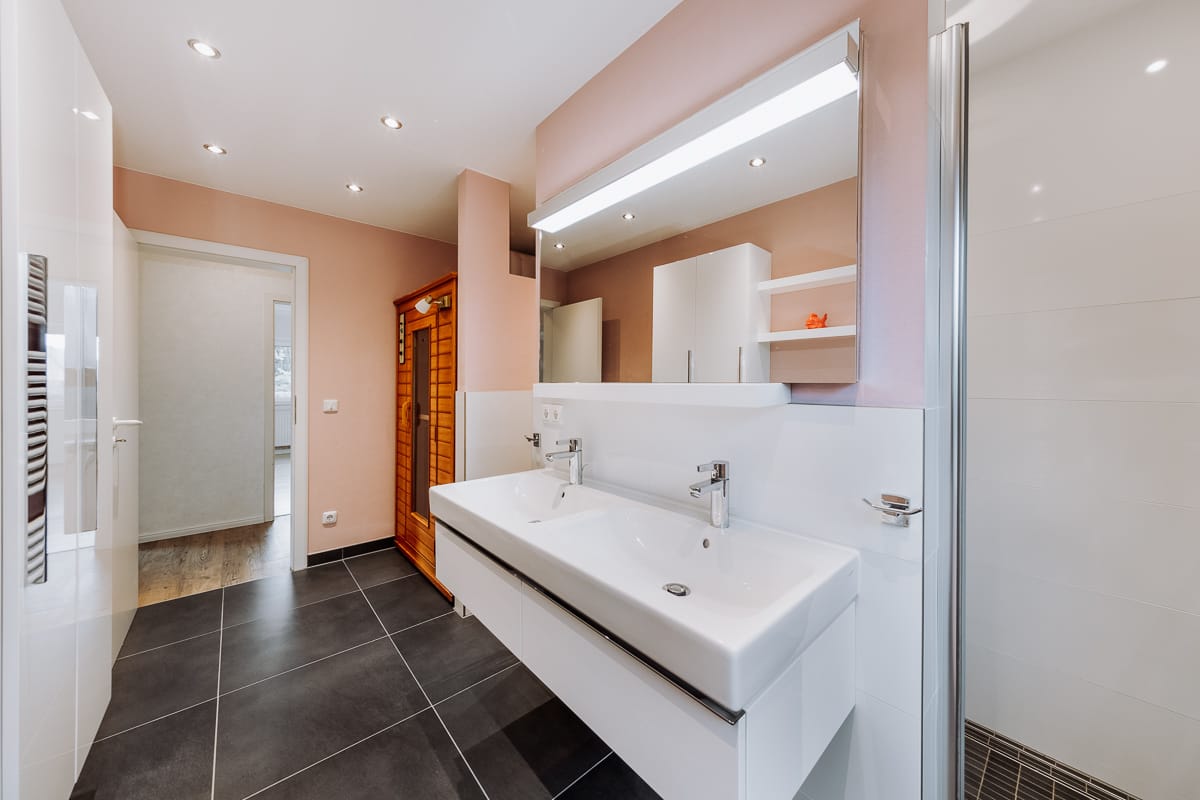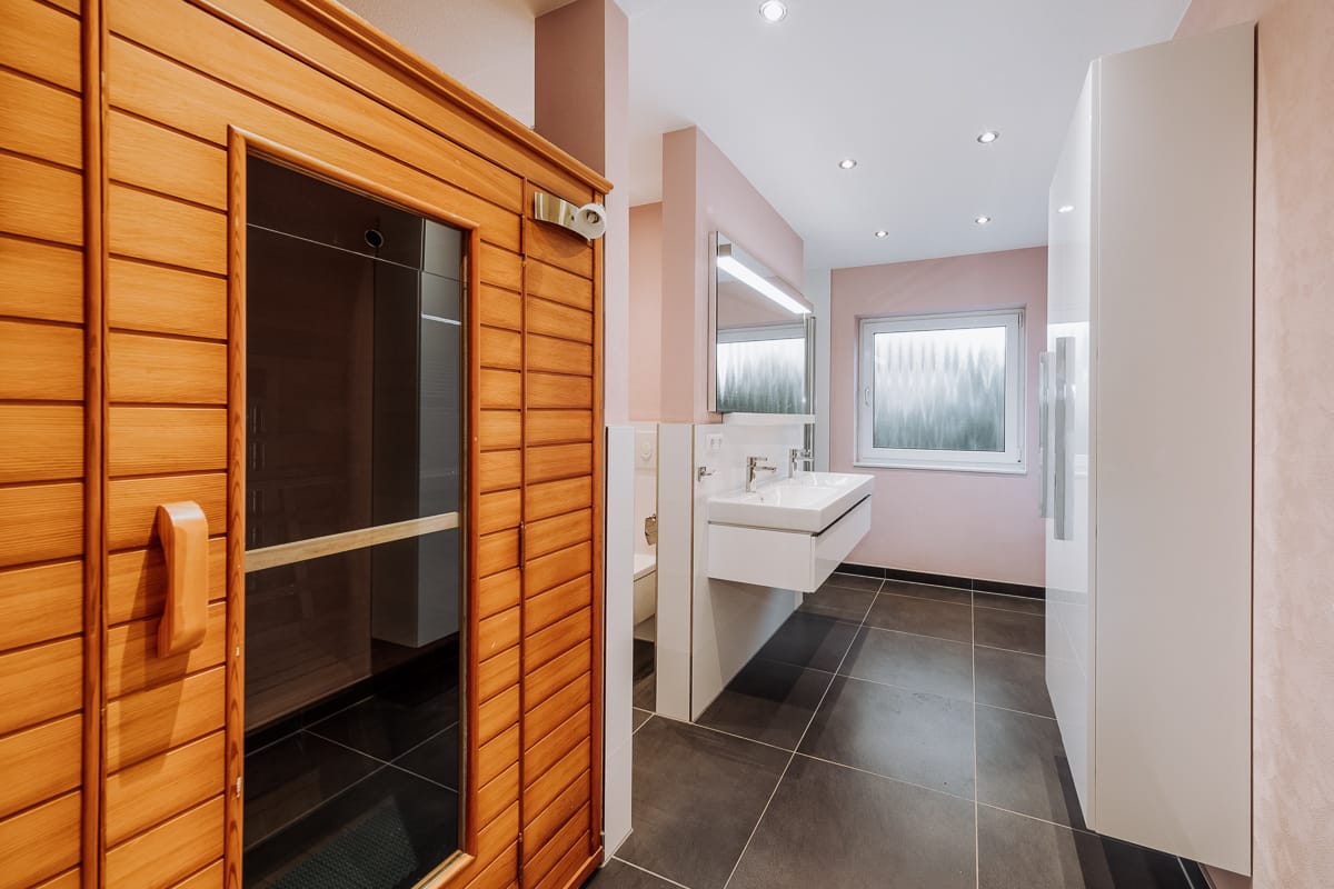 Im Erdgeschoss sorgen teils elektrische, teils manuelle Rollladen für Ihre Privatsphäre und angenehm kühle Räume in den Sommermonaten. Die modernen Masterbäder wurden in den Jahren 2017 und 2018 komplett saniert. Das Highlight des Masterbads im Erdgeschoss ist die wundervolle Infrarotwärmekabine, in der Sie und Ihre Familie an kalten Tagen die Wärme genießen werden.