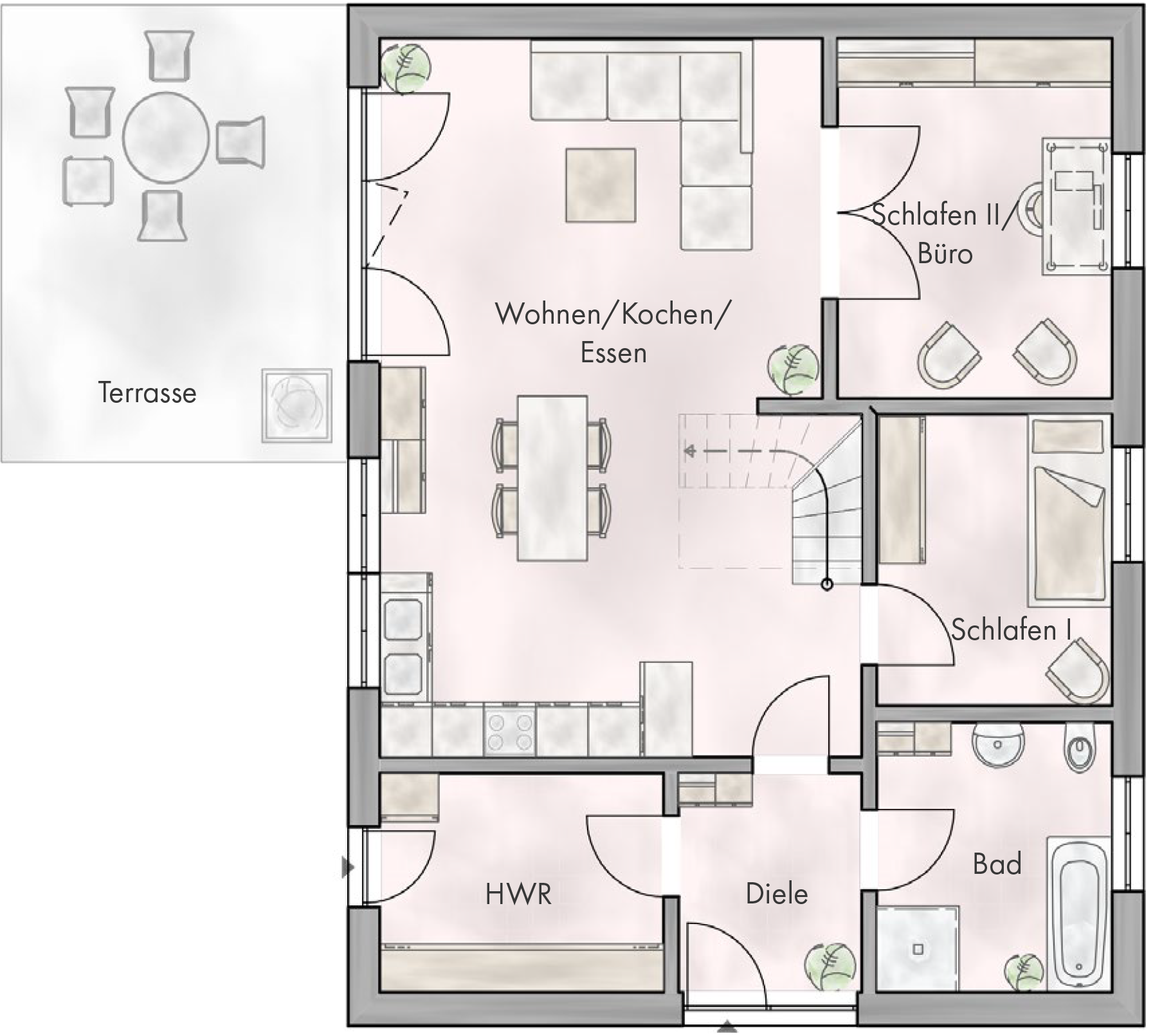 • Waschmaschinenanschluss im Hauswirtschaftsraum