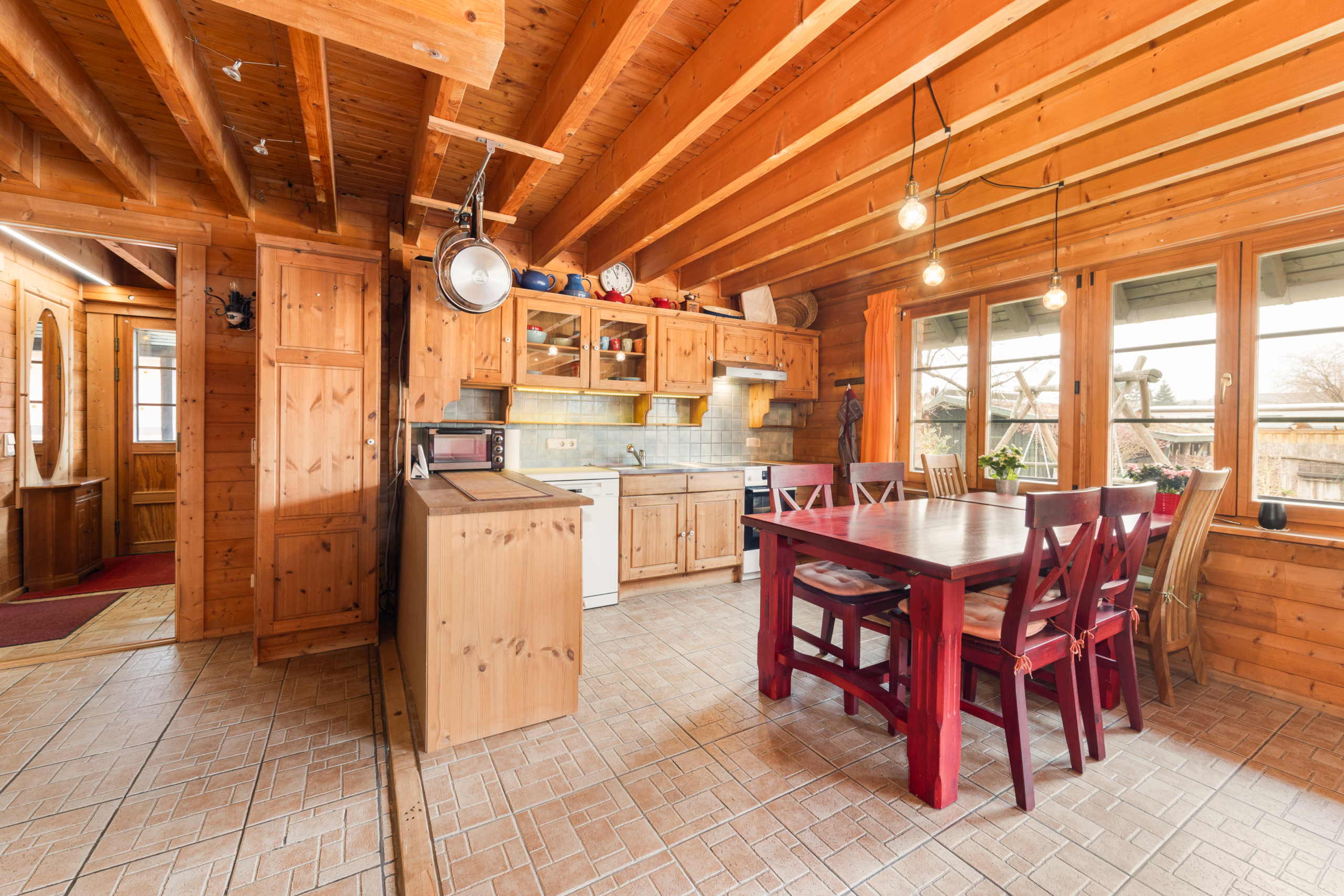 Das Einfamilienhaus verfügt über sechs Zimmer, darunter vier bis fünf Schlafzimmer, zwei Bäder/WCs und eine offene Wohnküche. Die durchdachte Aufteilung schafft ideale Wohnbedingungen in allen Lebenslagen. Dank des seniorenfreundlichen Erdgeschosses mit ca. 90,00 m² Wohnfläche, einem Wohnzimmer, zwei weiteren Zimmern und einem Bad mit Dusche und Badewanne (2012 saniert) wohnen Sie hier auch im Alter komfortabel – auf einer Etage. Während sich im Erdgeschoss der großzügige Gemeinschaftsbereich befindet, ist das Obergeschoss in drei private Schlafzimmer und ein WC aufgeteilt. Besonders liebenswert ist die außergewöhnliche Gemütlichkeit des Hauses mit einem rustikalen und beinahe alpinen Wohngefühl – wie in Ihrem letzten Winterurlaub.