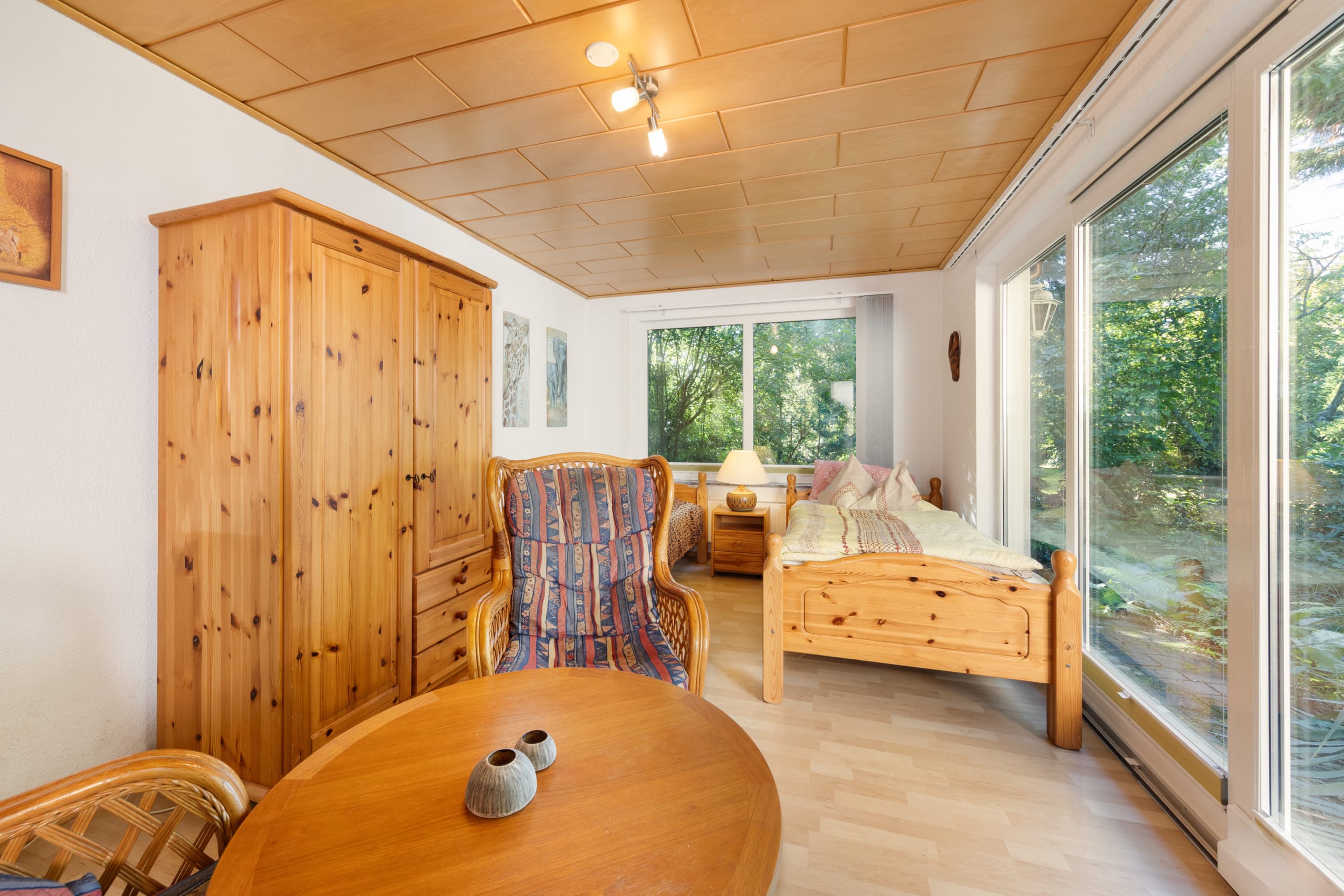Das Gebäude wurde 1932 als eingeschossiges Wohnhaus in Holzbauweise errichtet. 1976 erhielt das Haus eine zusätzliche Wämedämmung. In den Jahren 1989 und 1990 wurde das Haus inkl. Obergeschoss ausgebaut und teils saniert (z. B. Dach und Heizung). Rund zehn Jahre später wurden die Wasserleitungen erneuert. Im Jahr 2024 erhielt das Haus außerdem eine neue Gastherme. Darüber hinaus gehören doppelt verglaste Fenster, Parkett- und Laminatböden sowie ein rustikaler Kamin zur Ausstattung.