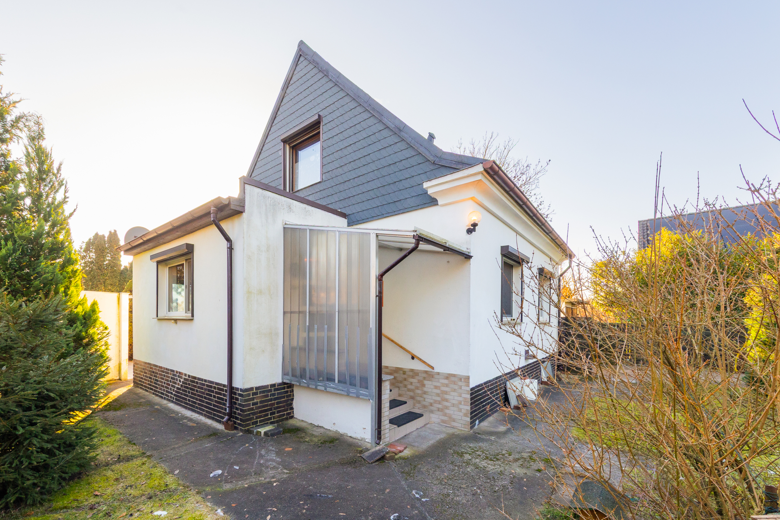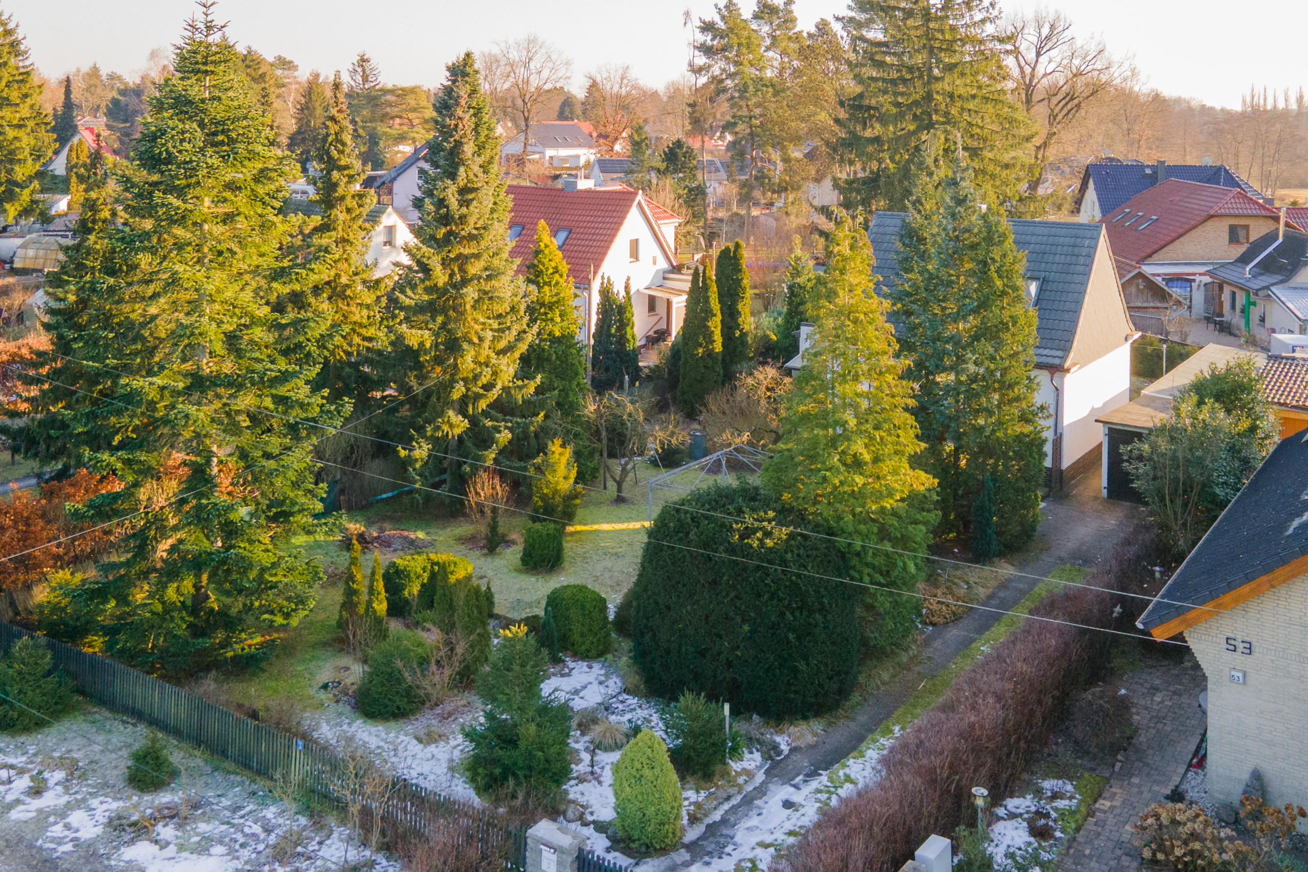 • Viel Privatsphäre dank zahlreicher Hecken, Nadelbäume und Nebengebäude