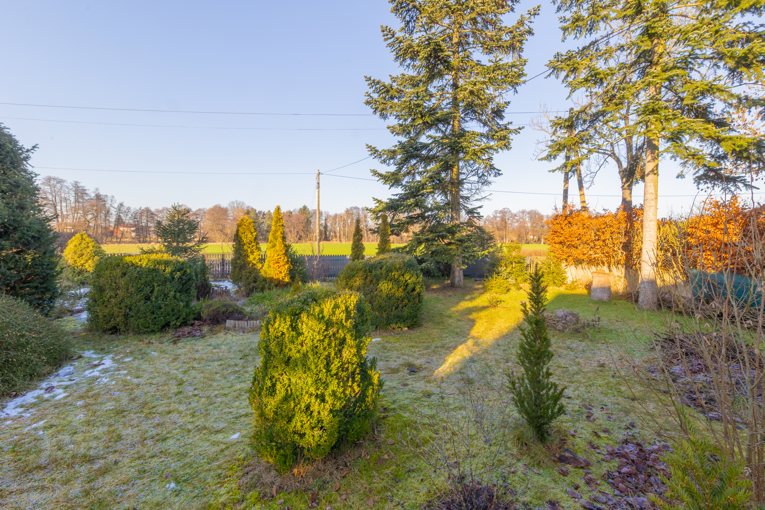 • Vollständig umzäuntes Grundstück mit Sichtschutz-Hecken und Sichtschutz-Zaun (Holz/PVC)