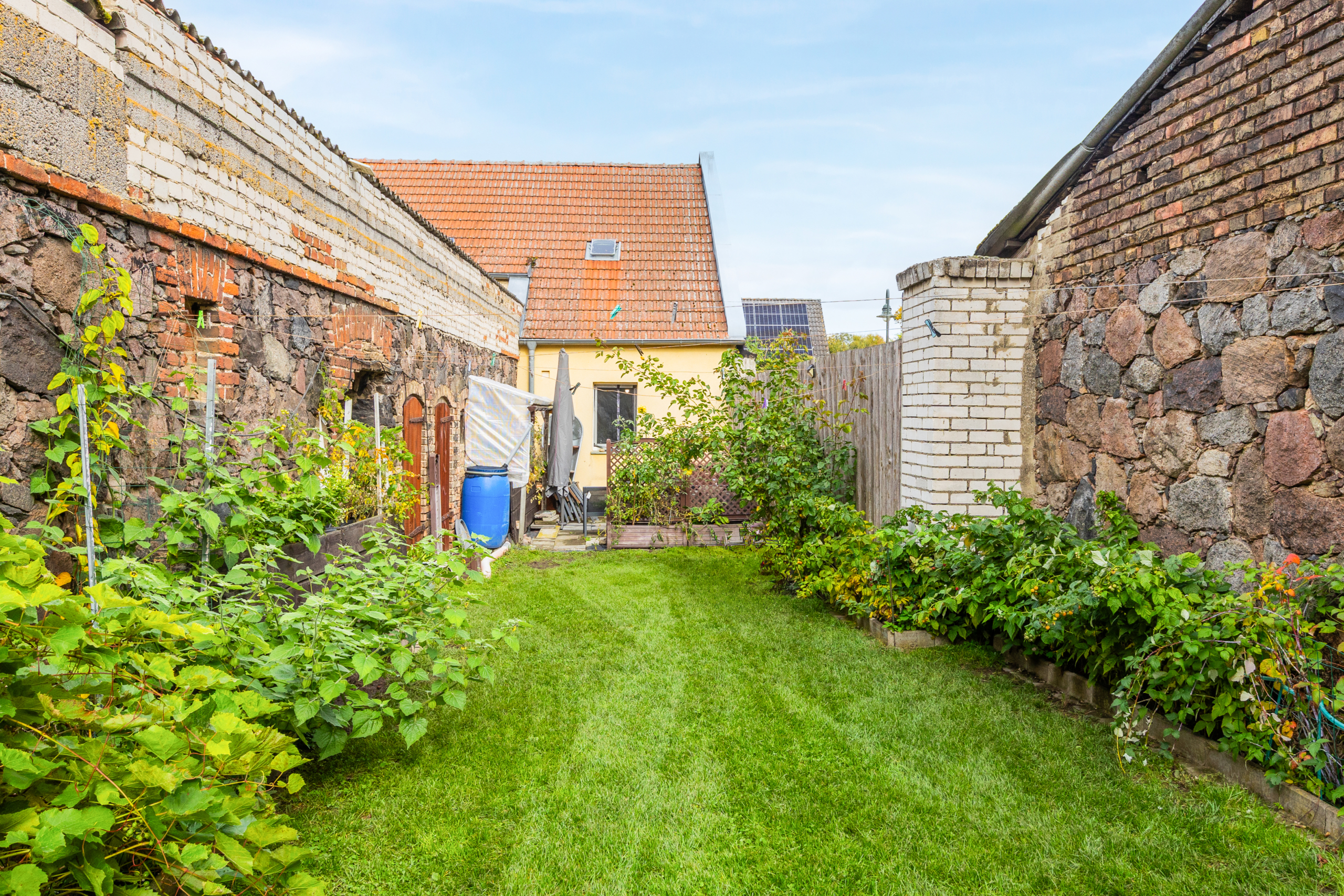 In Ihrem Garten erwartet Sie, dank hoher Zäune und Mauern, viel Privatsphäre. Eine Gartenterrasse zwischen der Remise und dem Nachbargebäude ist wundervoll vor Einblicken geschützt. Darüber hinaus bietet Ihnen das Grundstück eine angenehm große Grünfläche südlich der Remise.