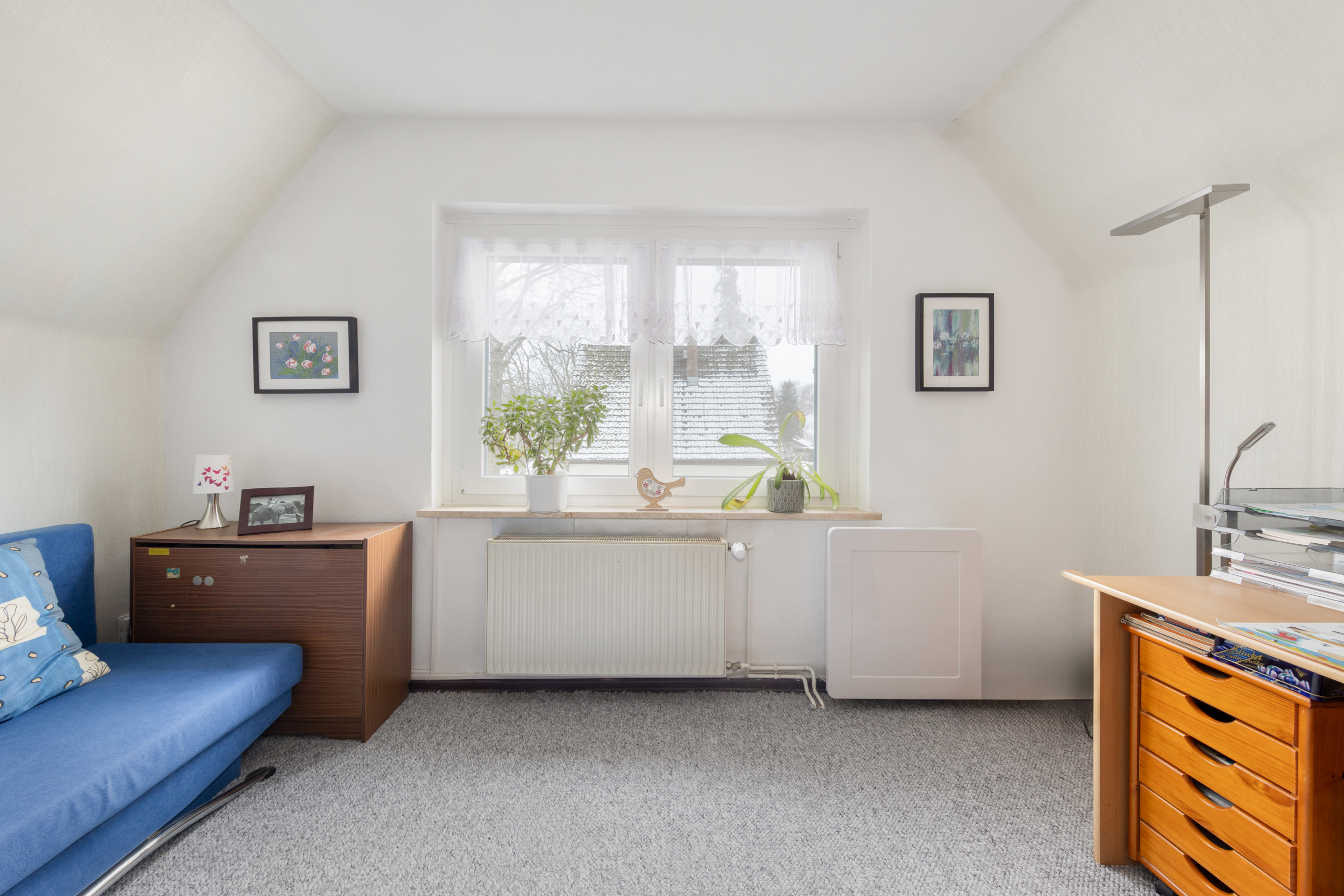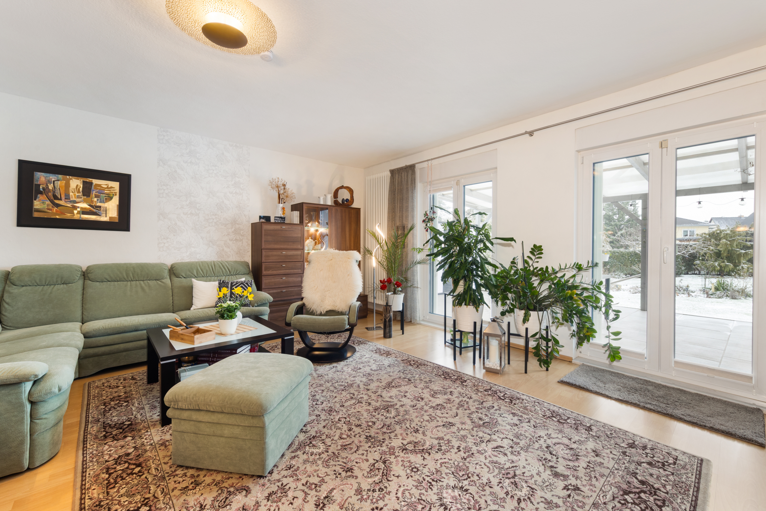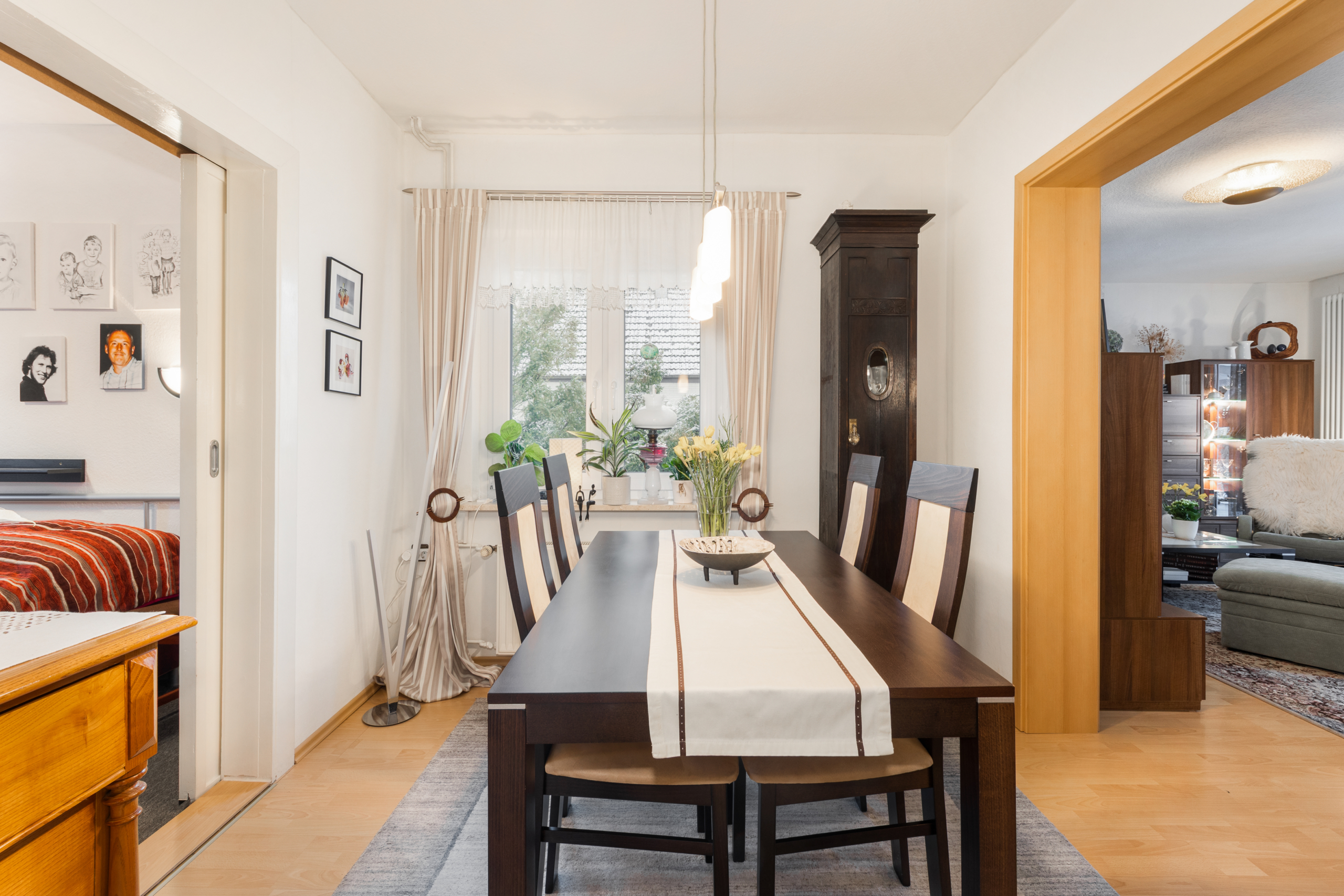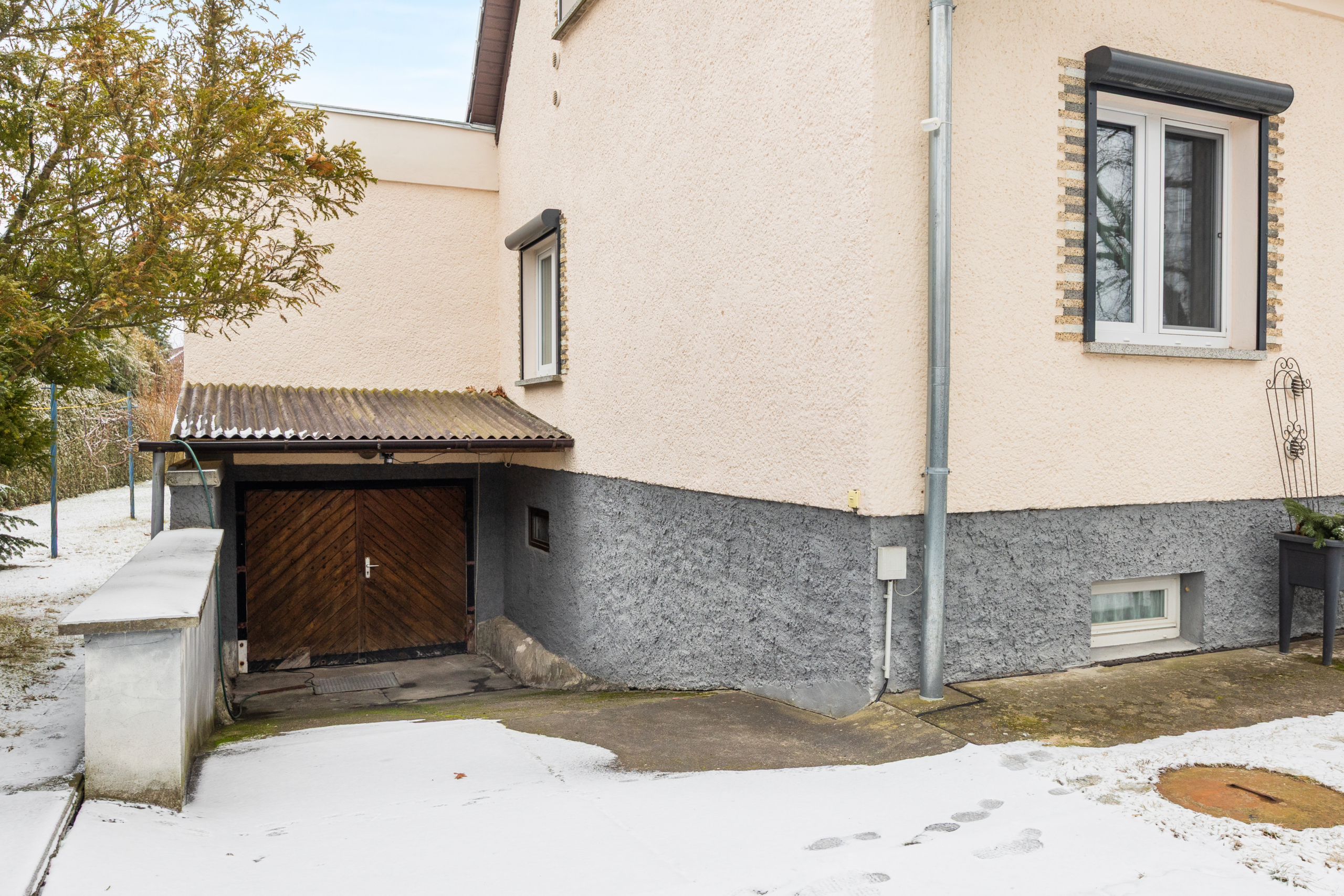 In dem massiv gebauten Einfamilienhaus auf dem Jahr 1934 stehen Ihnen vier Zimmer, darunter drei Schlafzimmer, eine moderne Küche und ein etwas in die Jahre gekommenes Badezimmer zur Verfügung. Der 1973 erfolgte Anbau inkl. Kellerausbau schaffte zusätzlichen Platz und viel Stauraum – inkl. einer Waschküche und einer separaten Tiefgarage. Die angenehm geschnittenen Räume, der Altbau-Charme und Details wie Schiebetüren mit Struktur- und Buntglas-Elementen verleihen dem Haus eine besonders wohnliche Atmosphäre.