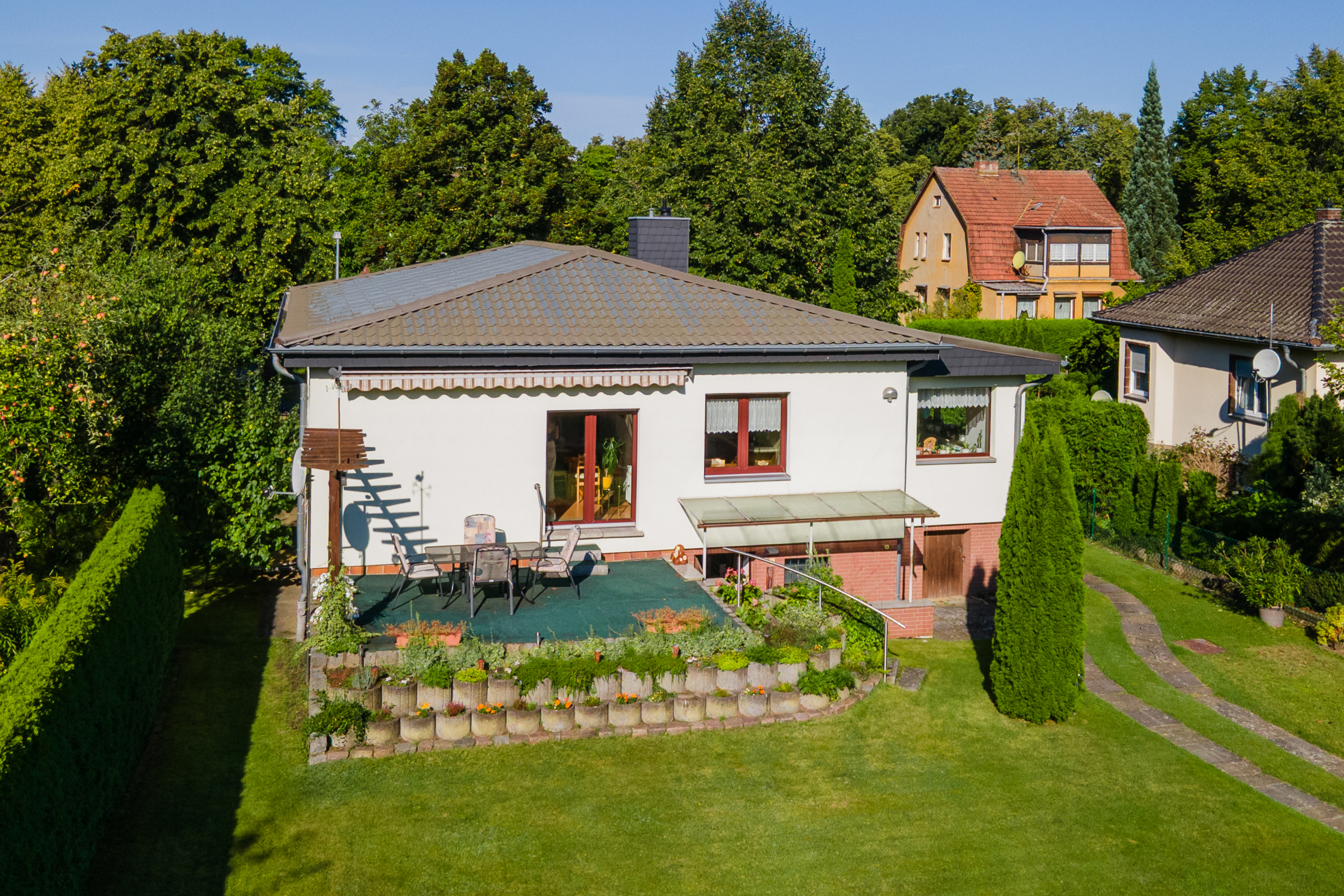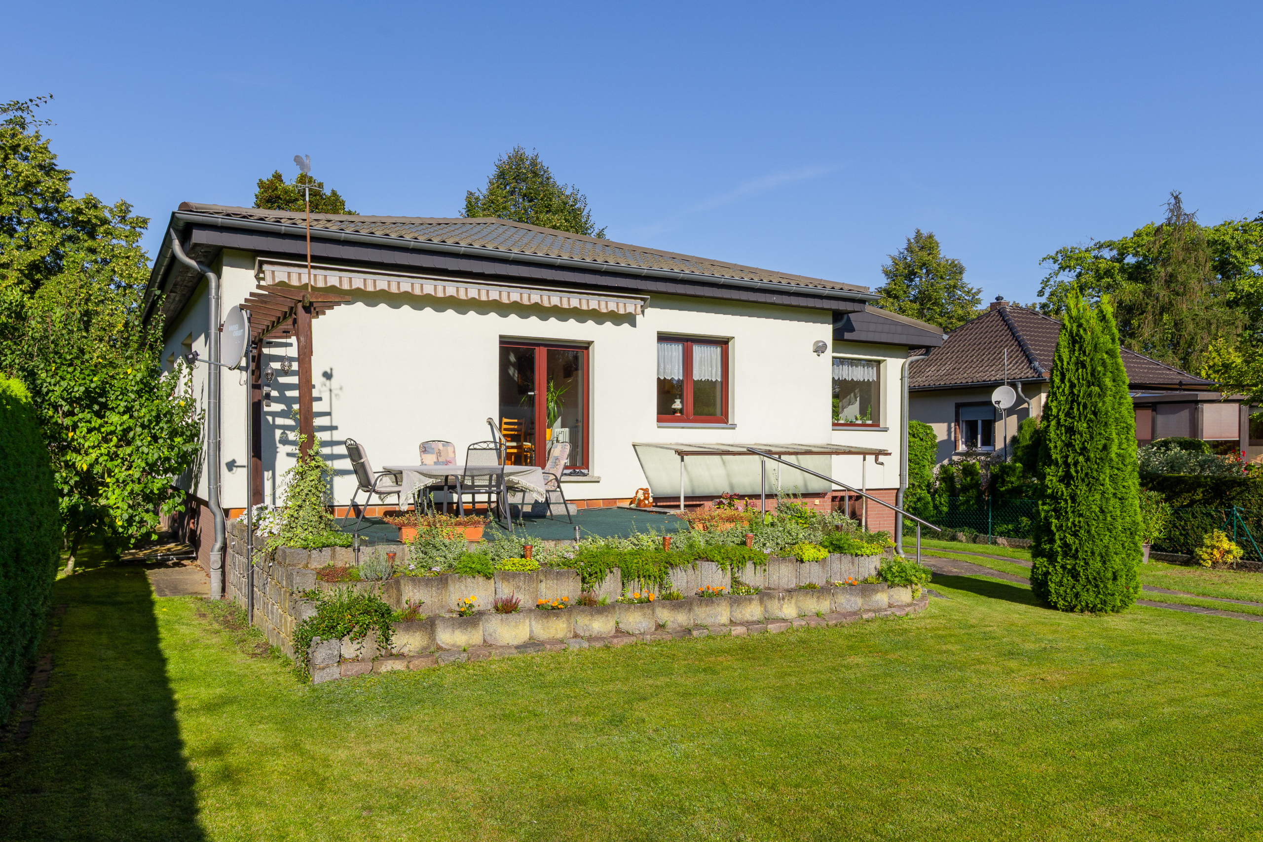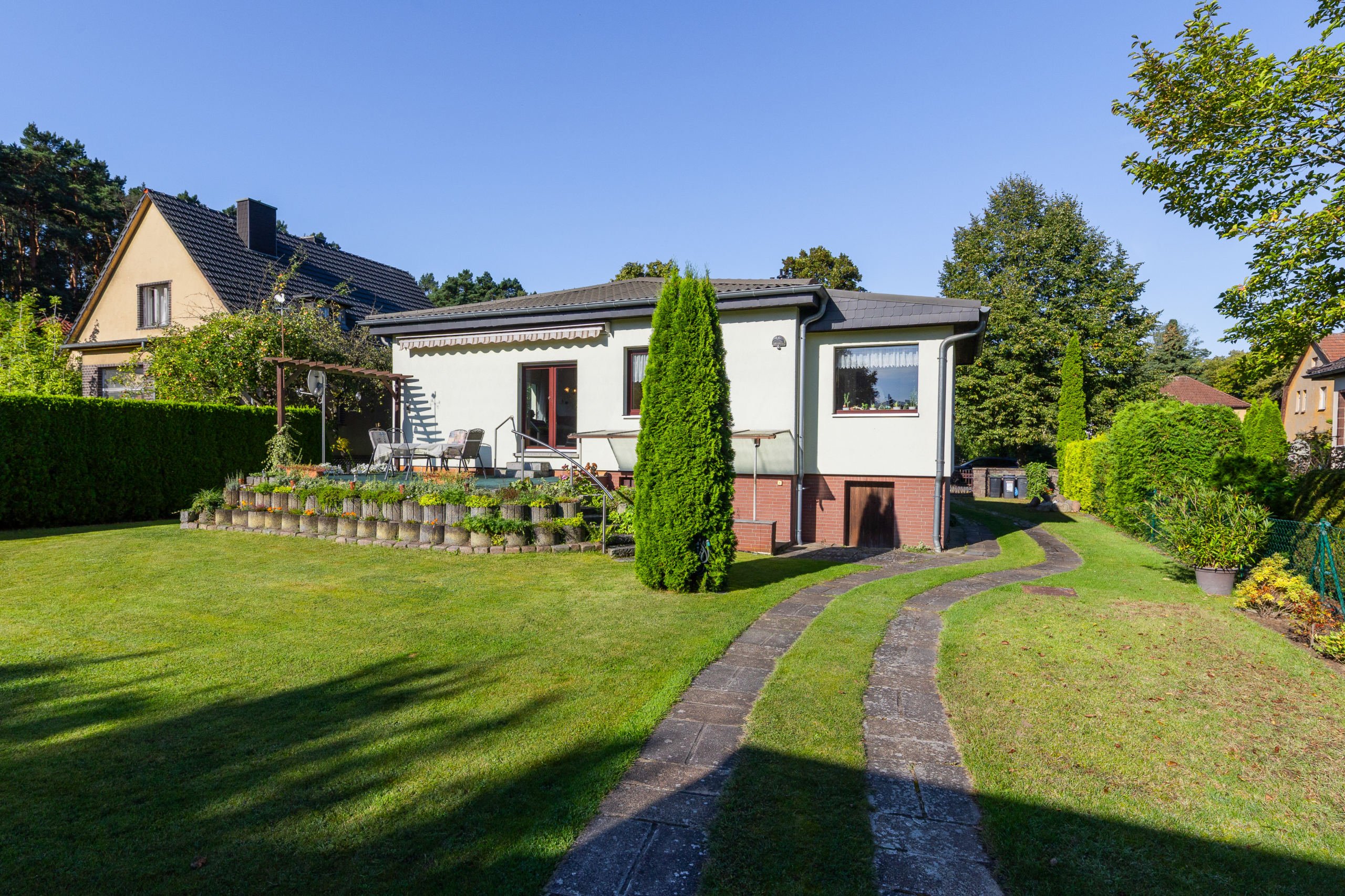 Nahe dem Eichberg und in Laufdistanz zum Woltersdorfer Zentrum wurde dieser hübsche Bungalow in Massivbauweise und mit großzügigem Souterrain-Keller im Jahr 1982 errichtet. Der Bungalow beherbergt vier angenehm große Zimmer, drei Bäder/WCs, eine separate Küche inkl. Einbauküche, eine helle Veranda, einen zusätzlichen Hobbyraum und außergewöhnlich viel Stauraum.