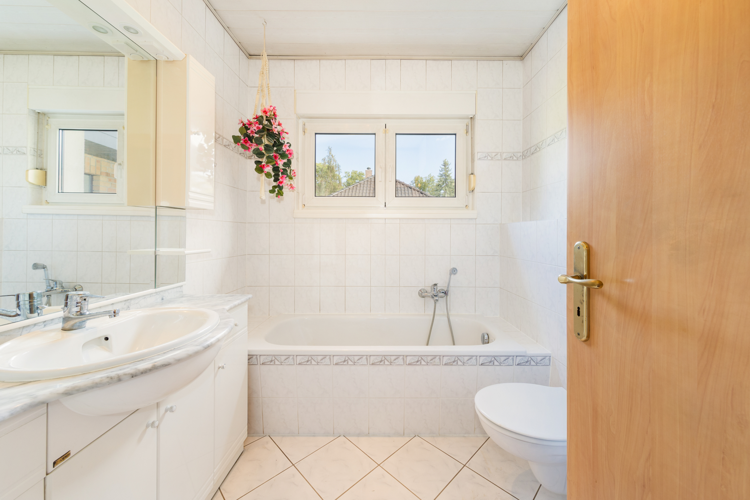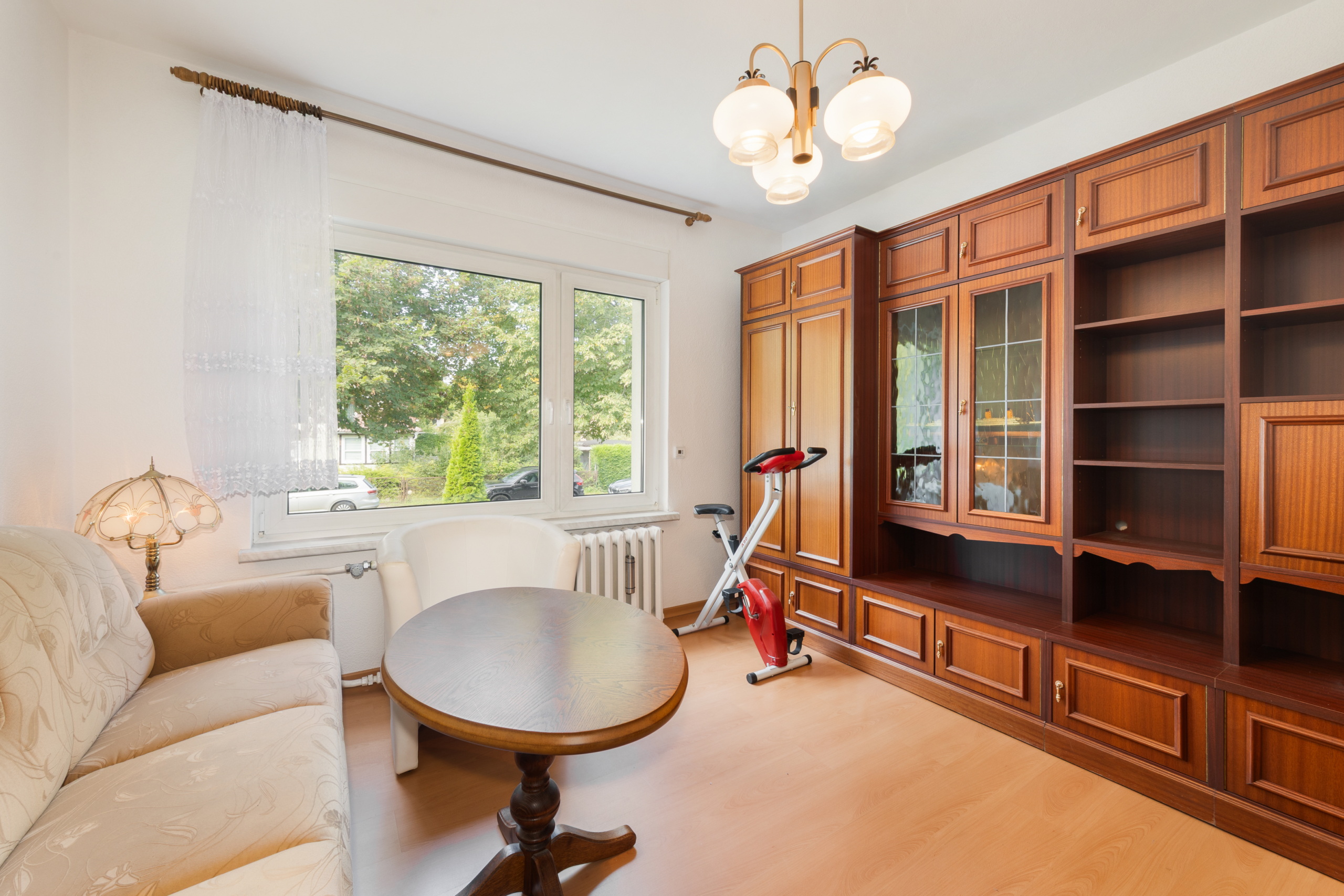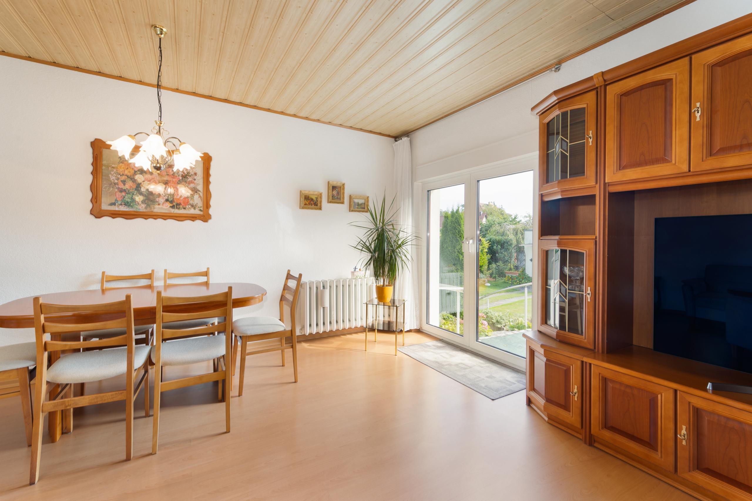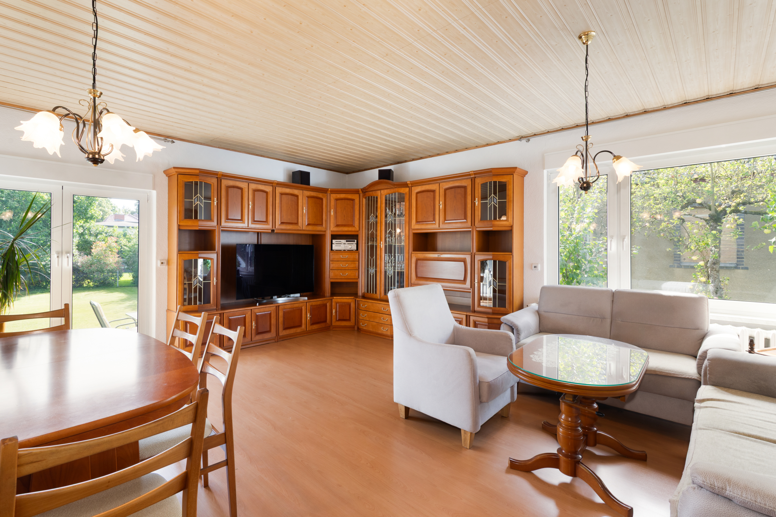Der Bungalow präsentiert sich darüber hinaus in einem guten Gesamtzustand. Ein sofortiger Einzug ist möglich. In den vergangenen Jahren wurden verschiedene wichtige Sanierungen vorgenommen. So wurden die Bäder im Jahr 1995 saniert. 1998 erfolgte der Einbau neuer Fenster inkl. manueller/elektrischer Rollläden. Sieben Jahre später wurde das Dach neu eingedeckt. Im Jahr 2015 erhielt das Haus eine neue Gasbrennwerttherme der Firma Junckers.