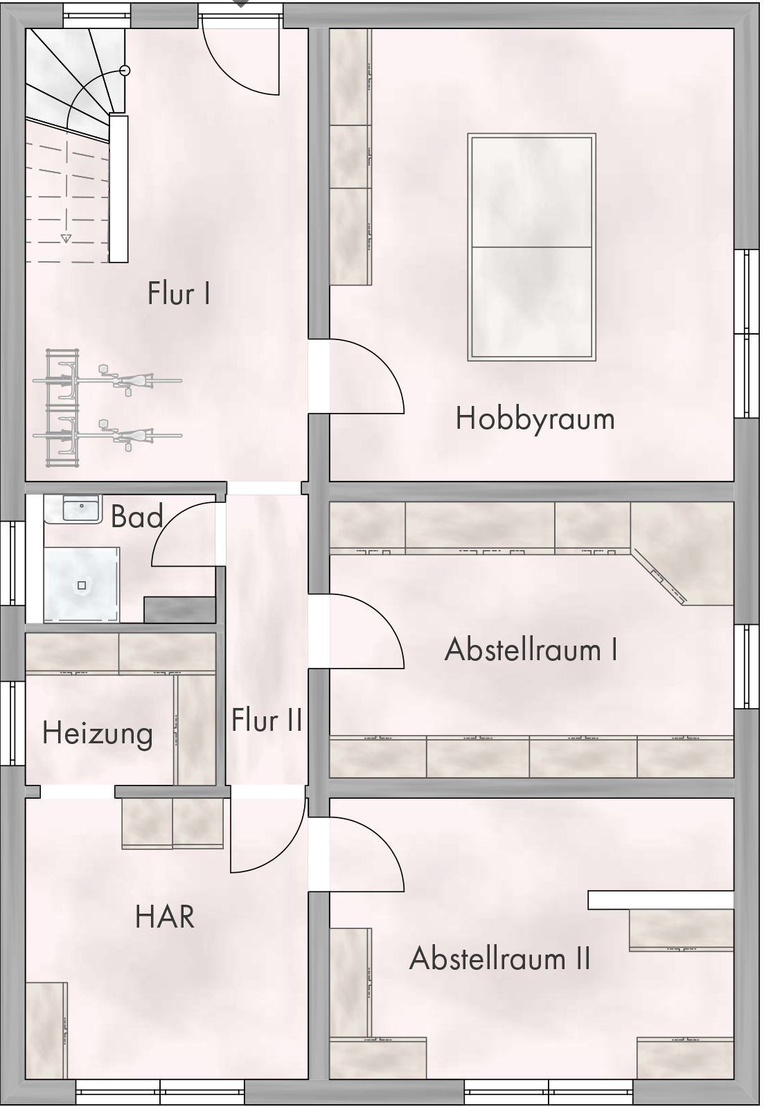 Während das Erdgeschoss Ihnen seniorenfreundliches Wohnen auf einer Ebene bietet, nutzen Sie den Keller z. B. für Ihre Hobbies oder als Lagerfläche. Hier befinden sich auch der Heizungsraum und die Waschmaschinenanschlüsse, so dass das Erdgeschoss verhältnismäßig viel zu Wohnzwecken nutzbare Fläche bietet.