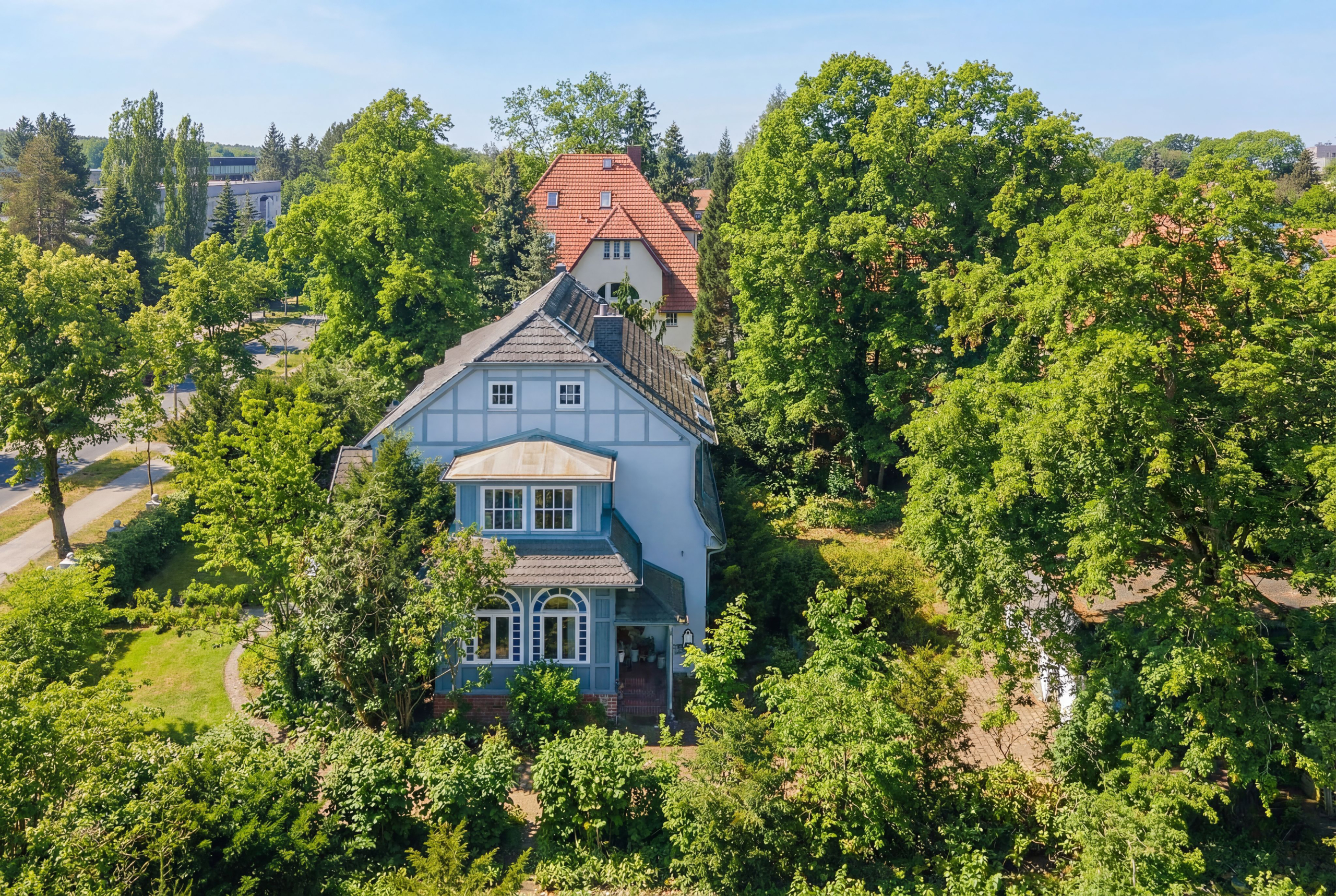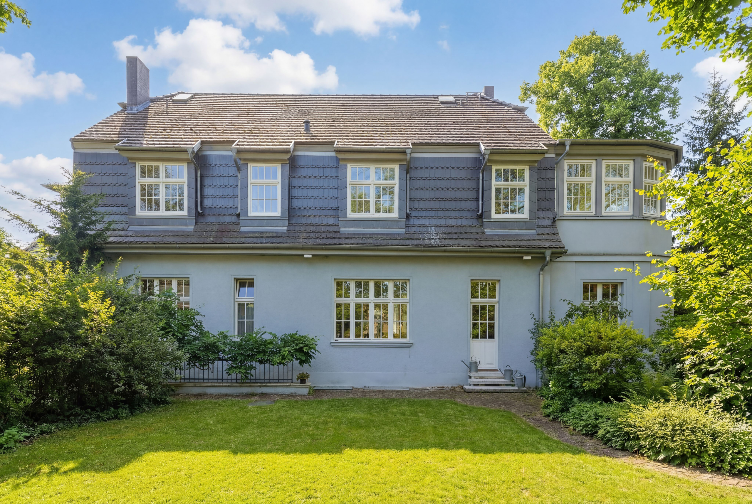 • Viel Privatsphäre dank vereinzelter Hecken, Nebengebäude und hoher Laub- und Nadelbäume