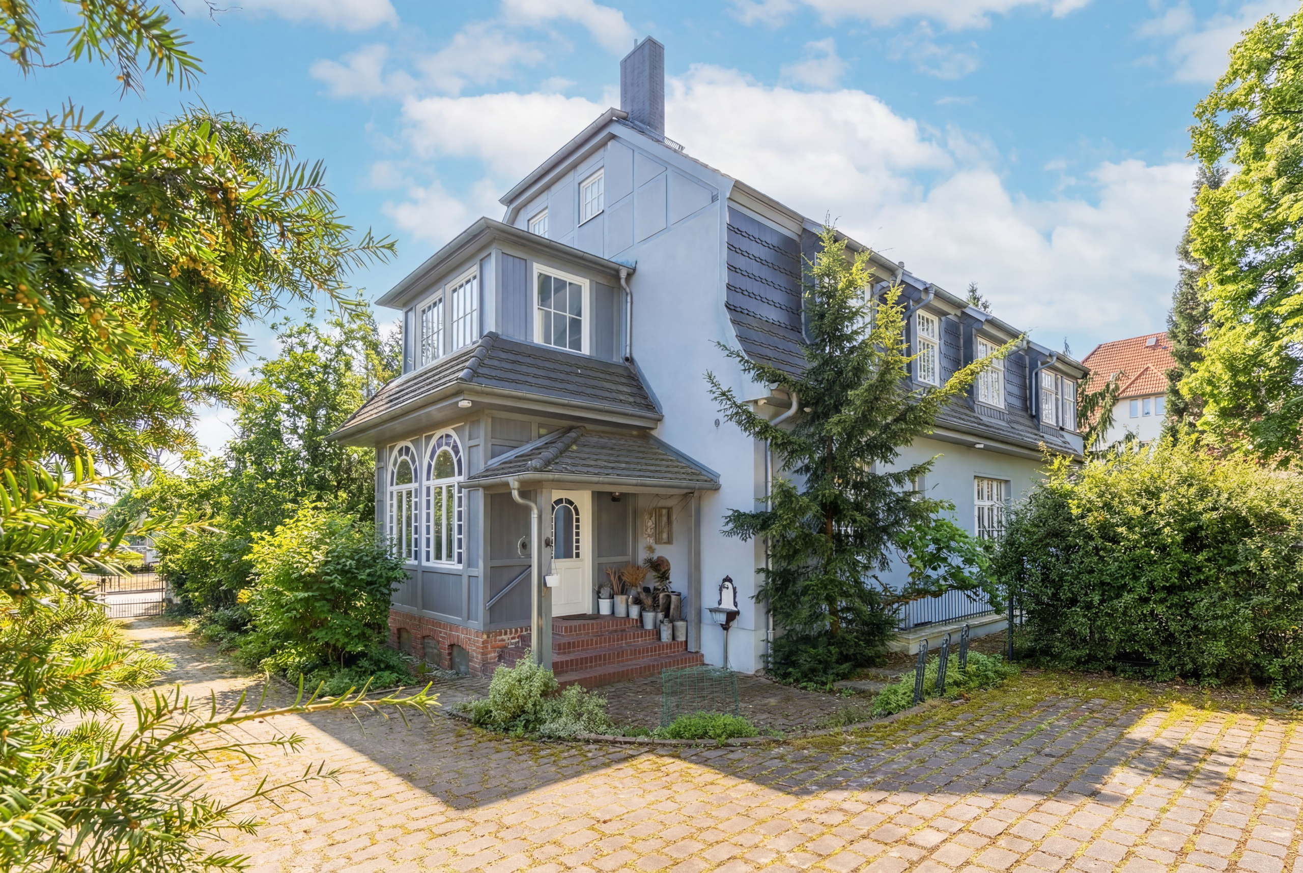 In unmittelbarer Nähe der Rennbahn Hoppegarten erwartet Sie auf einem außergewöhnlichen Parkanwesen die beeindruckende Gründerzeit-Villa „Luise“. Gebaut im Jahr 1913 begeistert das einzigartige ehemalige Herrenhaus mit zahlreichen historischen und liebevoll sanierten Details. Dazu zählen u. a. die hohen und z. T. mit Stuck dekorierten Decken, die Original-Kassetten-Türen, die vielfältigen und stilvoll sanierten Holz-Fenster, die atemberaubende Treppe, die atmosphärischen Parkett-, Fliesen- und Dielenböden, die beiden wundervollen Kaminöfen, die Schlepp- und Fledermausgauben sowie zahlreiche weitere liebenswerte Details.