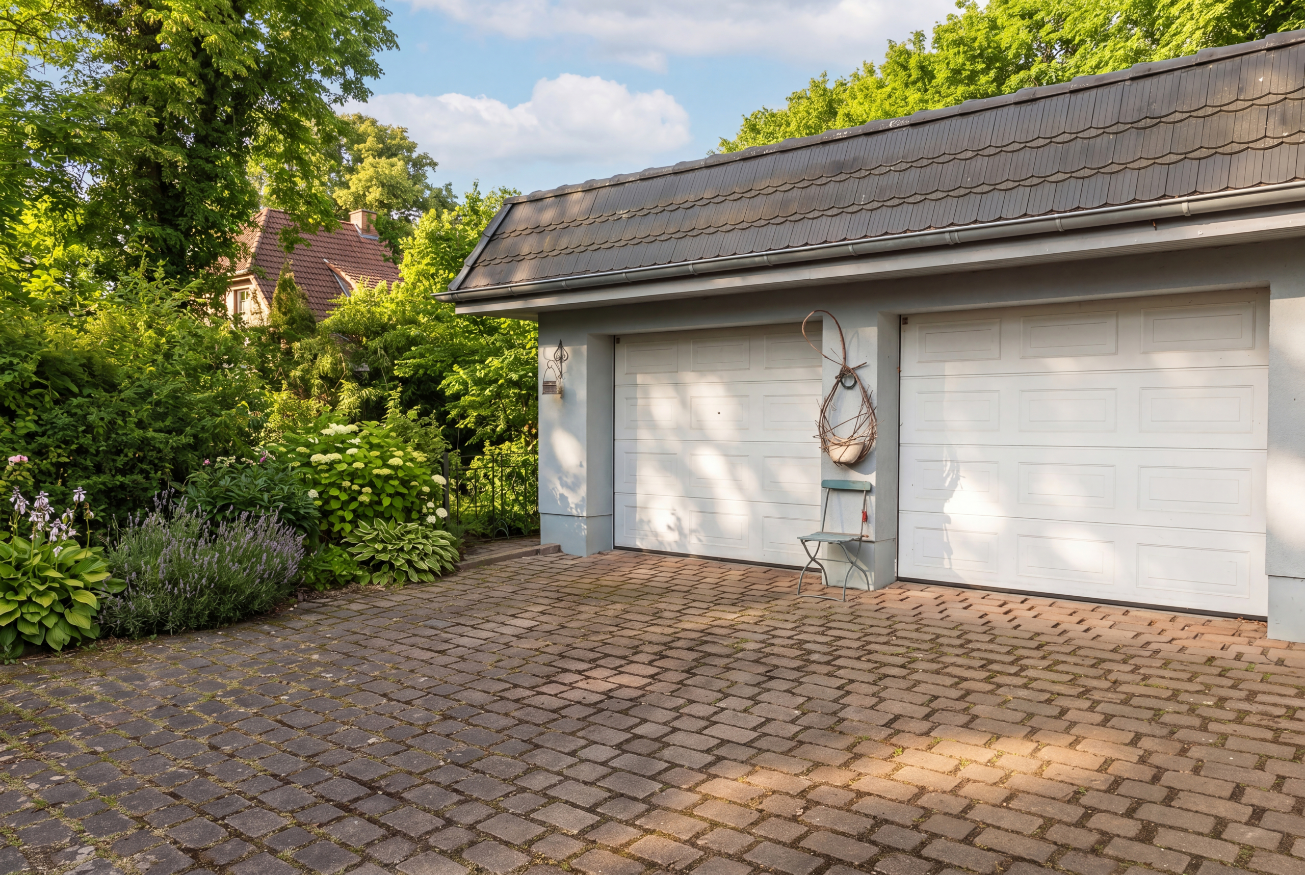 • Großzügige Doppelgarage mit zusätzlichem Platz für Fahrzeuge, Hobbys und Werkzeuge