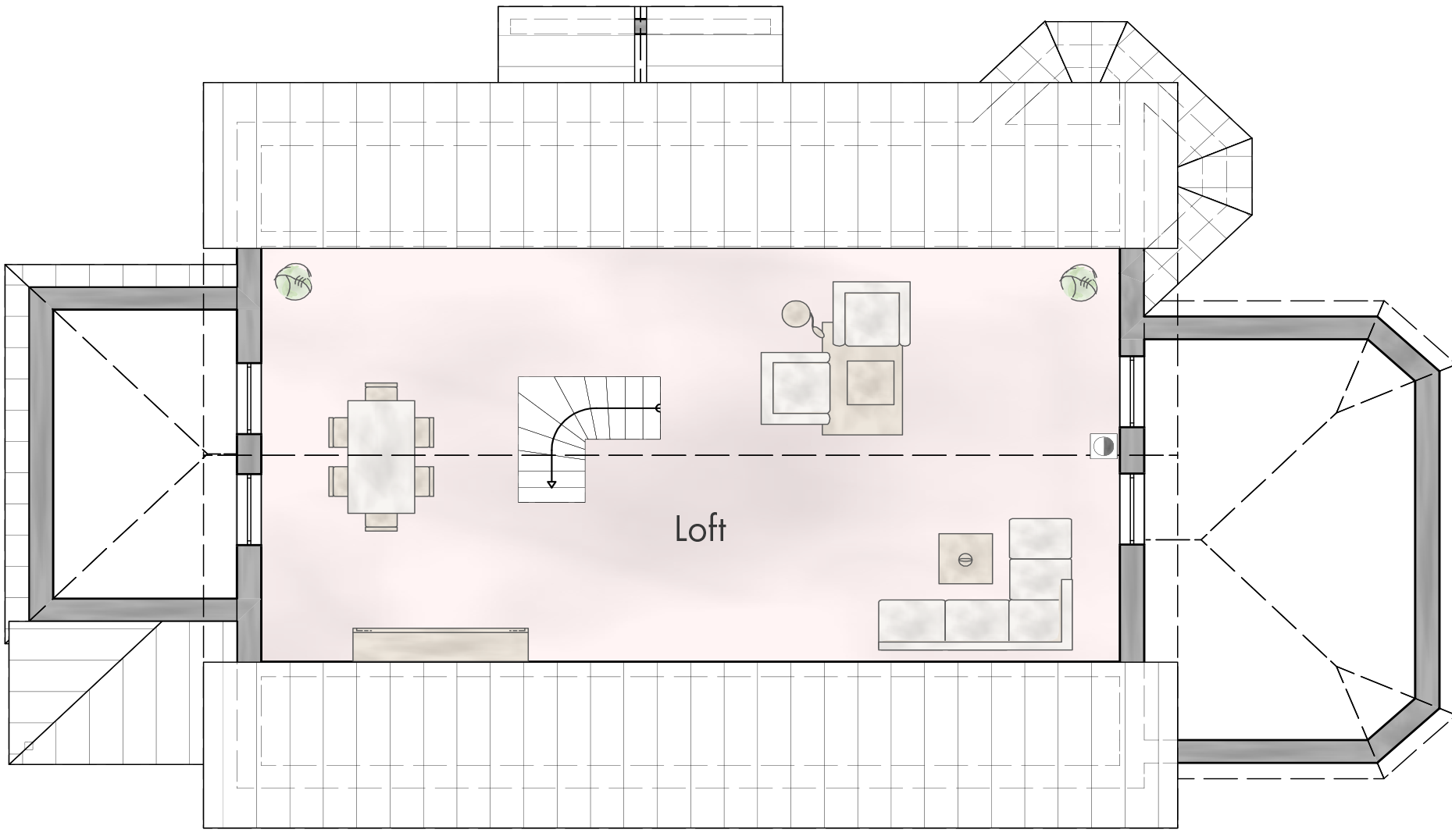 • Kamin-Ziegelsims im Dachgeschoss