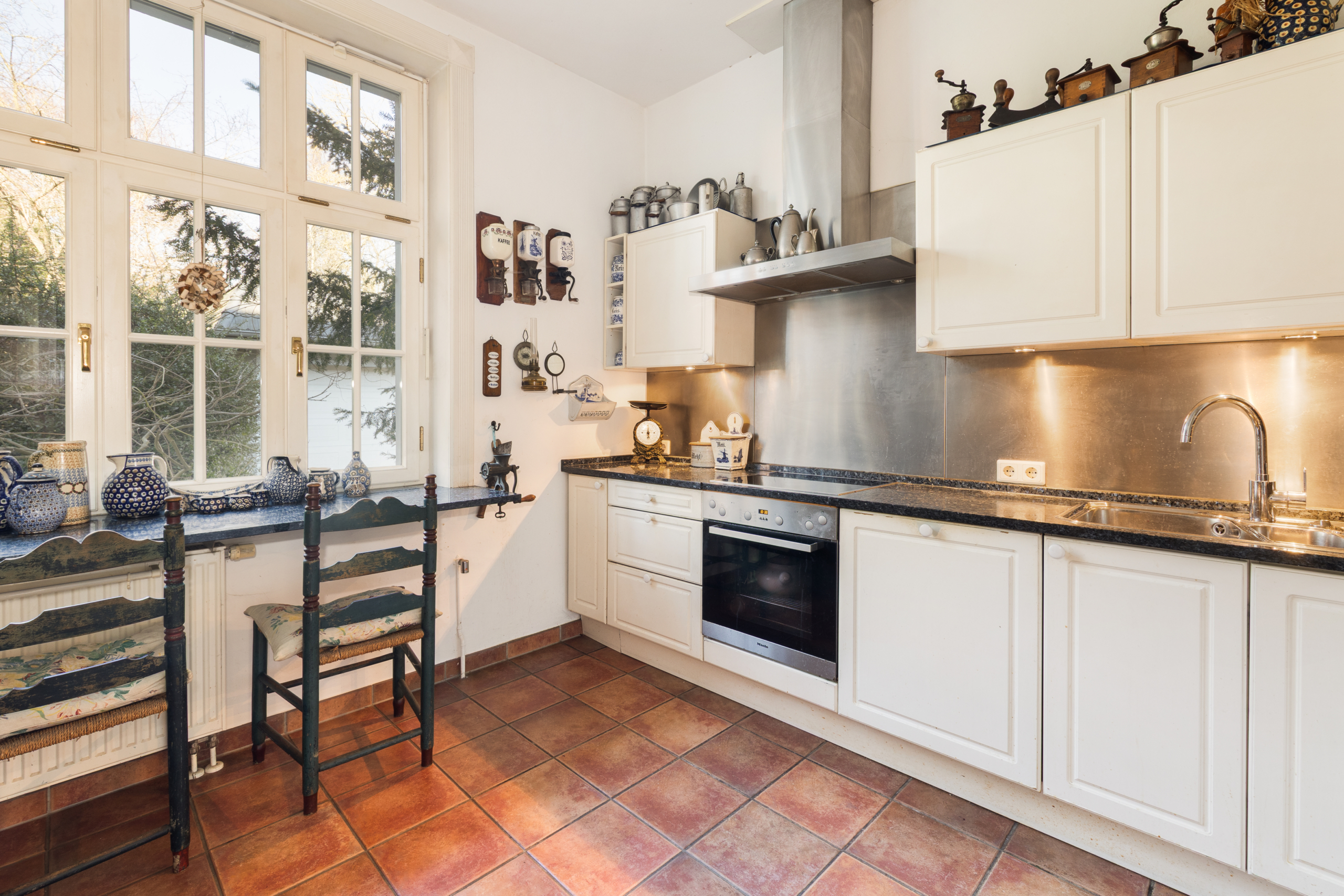 • Separater Küchenraum mit Fenster und Blick in den Garten