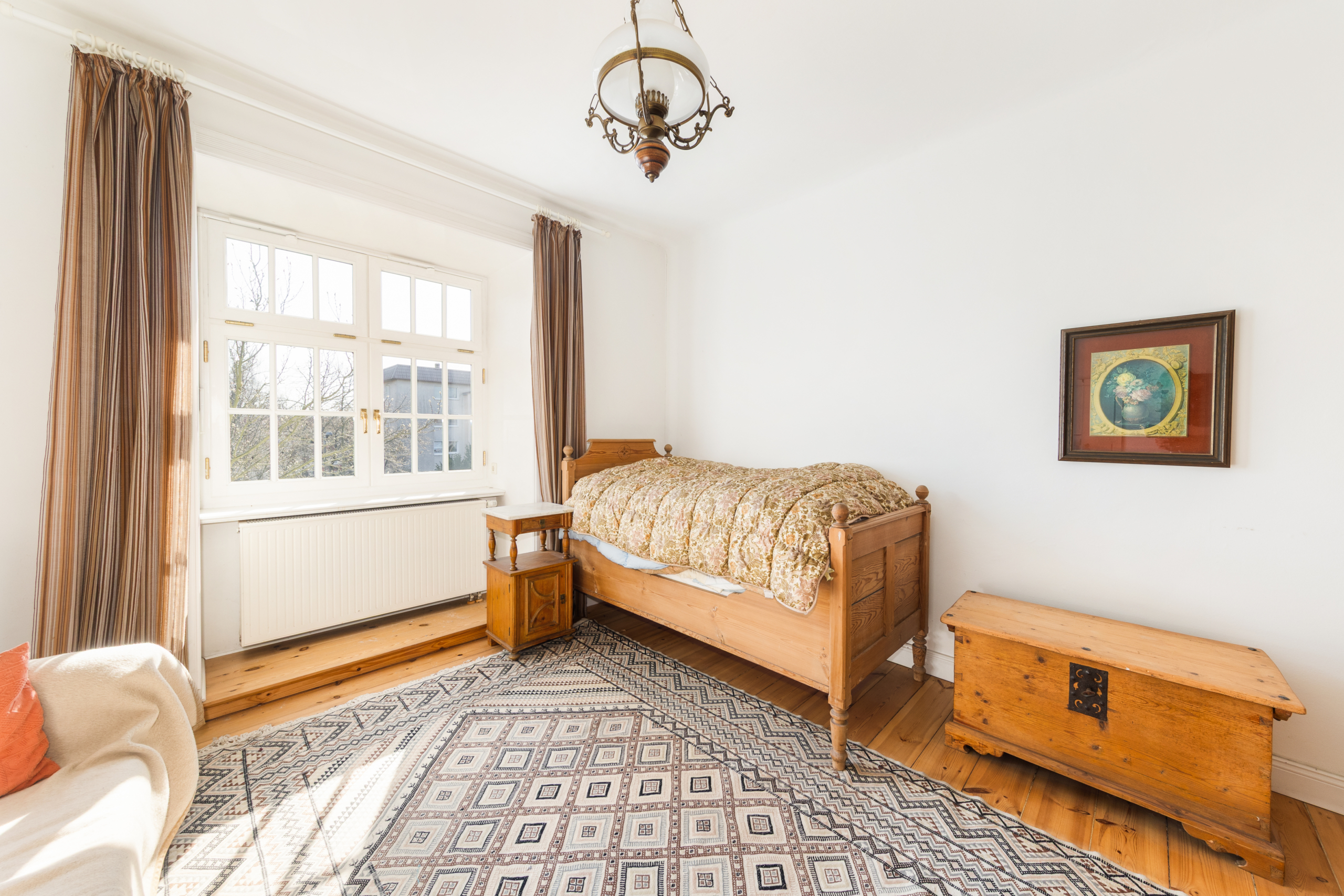 Die wundervoll großen Räume des Hauses werden Sie mit ihrer erhabenen und zeitlosen Eleganz, ihrer wundervollen Wohnatmosphäre und ihrer angenehmen Helligkeit verzücken. Derzeit beherbergt die als Einfamilienhaus genutzte Villa insgesamt elf Zimmer (vier bis fünf Schlafzimmer), drei Bäder und eine Küche. Der Umbau zu einem Zwei- oder Dreifamilienhaus wäre voraussichtlich ebenfalls möglich. Das Wohnhaus steht unter Ensembleschutz.